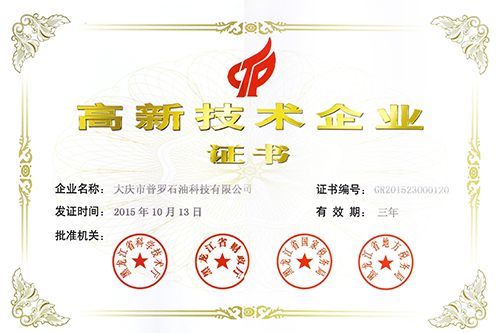 2009年9月取得了高新技術(shù)企業(yè)證書;
